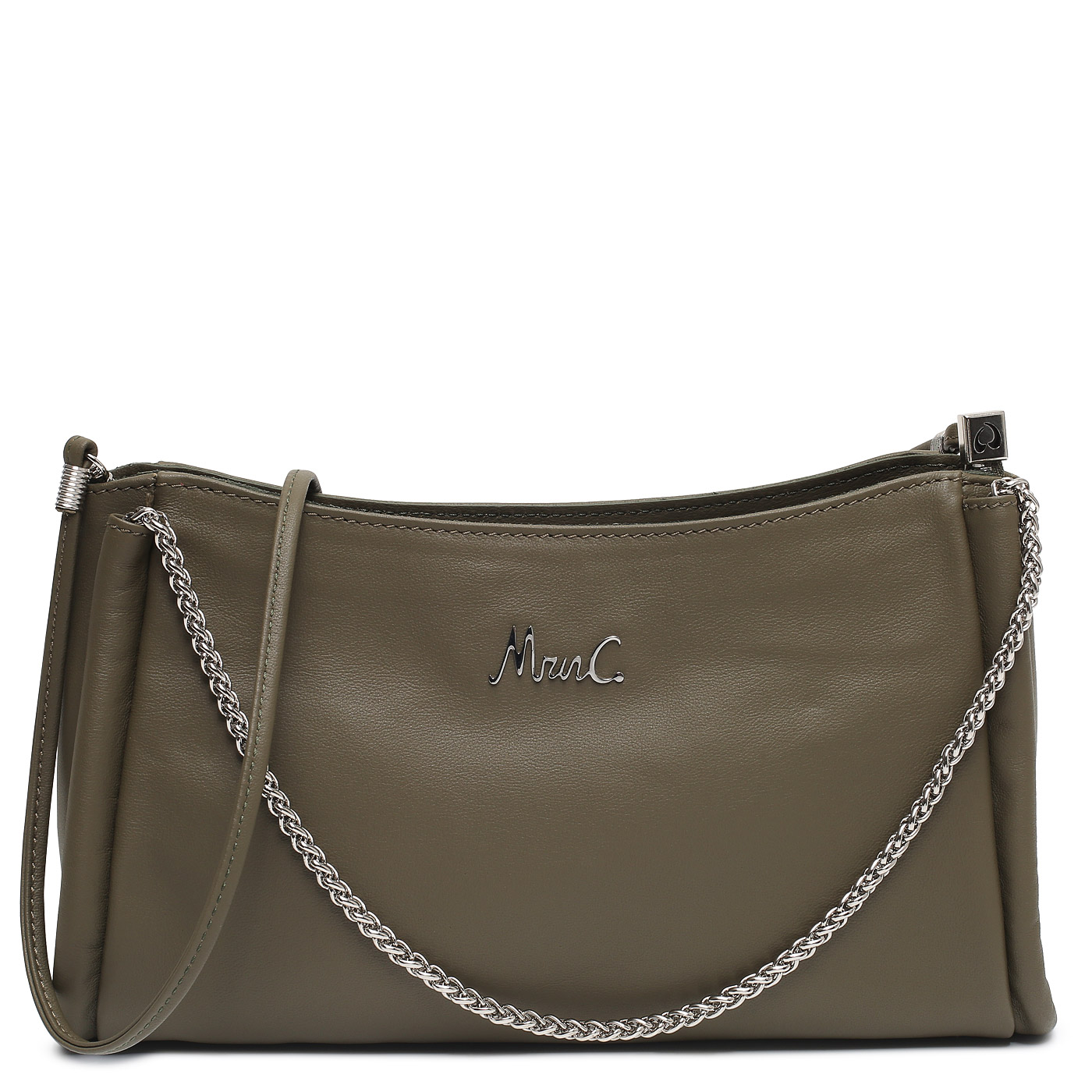 Кожаная сумка с ручками-цепочками Marina Creazioni 7044_oliva_pc - 2000558710701 оливковый натуральная кожа 29 x 17 x 7 Цена 12490 руб. купить в интернет-магазине PanChemodan.ru в Москве