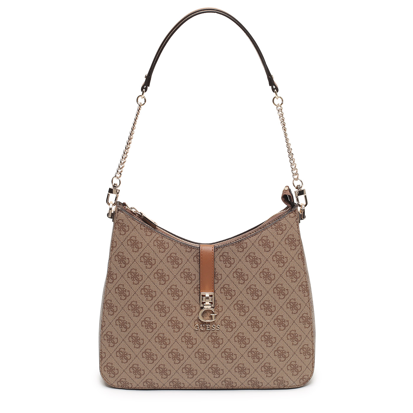 Сумка с ручкой-цепью Guess Zamira HWSG96 29020_latte logo_pc - 2000558742535 бежевый полиуретан 30,5 x 25,5 x 8 Цена 19900 руб. купить в интернет-магазине PanChemodan.ru в Москве